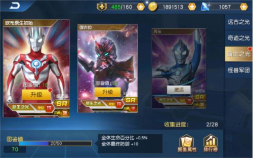 v1.28版本:引入典藏品质”英雄与全新圣元素体系,特利迦奥特曼复合型登场,攻守兼备、群体辅助,战略维度全面升级。