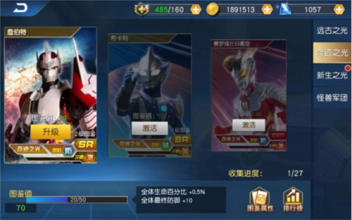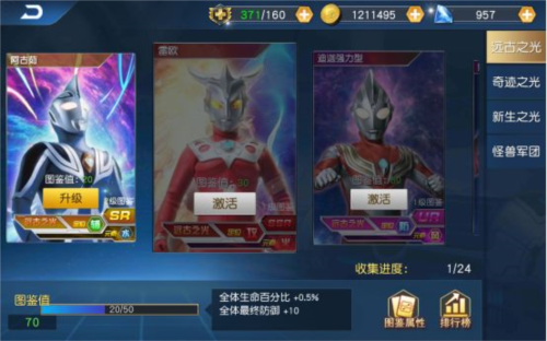 奇迹之光:詹伯特(地·防)、希卡利(风·辅)、赛罗强壮日冕(地·防)等进阶形态,展现进化后的无上力量。