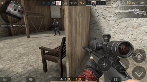 小地图观察:规避近战风险狙击手近战能力薄弱,必须时刻关注屏幕左下角小地图——蓝色代表友军,红色代表敌人。通过观察敌方动向提前转移位置,利用掩体拉开距离,是生存与输出的前提。