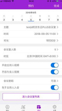 1、会议模板:京东云plus云会议app可以创建固定的会议模板,可以固定与会时间和与会人,系统将自动提前给与会人发送会议通知。适用于固定人员的周例会、部门例会等,再也不用每次预定会议,节省时间。