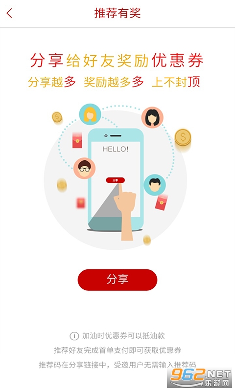 【分享奖励】:将DT加油分享给好友,好友完成首单支付,分享用户将得到油米奖励。