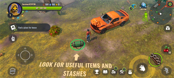 1、开局先捡点树枝,做个武器,先把家附近的丧尸清了!然后去车上拿把刀,再造几块地板放地上,(系统任务,不造你出不了地图)出去地图,左边右边各有一片地,左边的是石头地,右边的是树林。去的右边,去转下,找到一个NPC,他会攻击你,把他杀了,然后把光他,然后尽量把自己的包包装满资源,回家!这时候你应该可以造储物箱了,造他3,4个,把背包的东西放里面。
