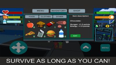 一款像素风格流浪汉求生游戏,在像素的世界中,玩家将要扮演一个流浪汉,在这个世界中漂泊不是一件容易的事情,求生的道路也会遇到很多的波折,在一天一天的生存中,各种困难会迎面而来,搜索垃圾箱,乞讨,出售垃圾,获得生存的机会,然后一步一步让自己从流浪汉的阶层中爬出来。