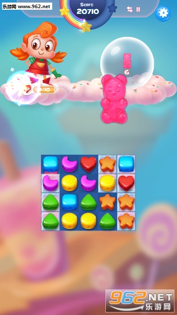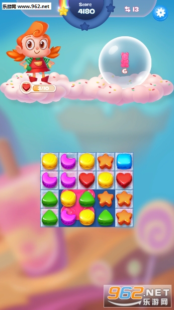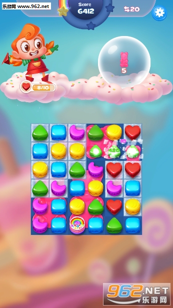 1.在传统三消的基础上加入了宠物小助手,通过释放道具,帮助你通关。