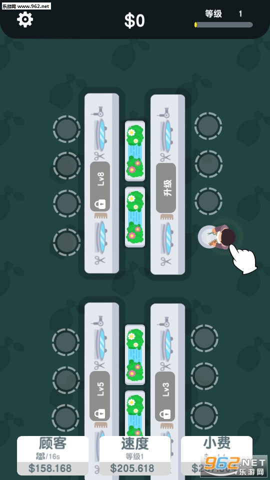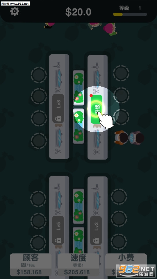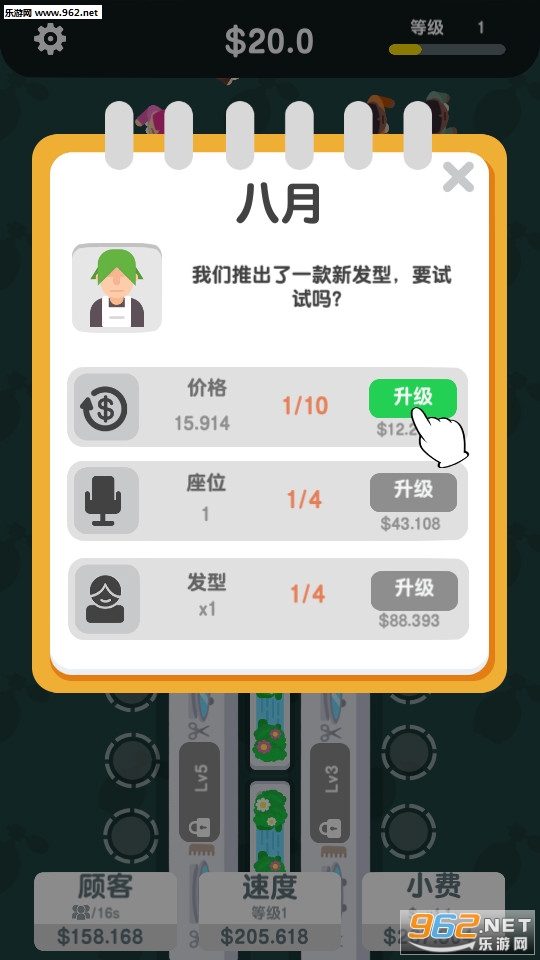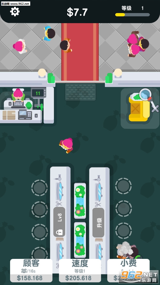 3、剪发后你可以获得大量的金币,利用这些金币对整个理发店进行升级
