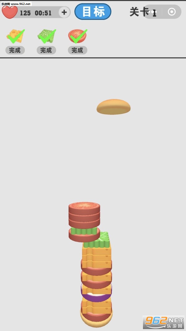2、从低难度关卡开始挑战,学习制作比较正常的汉堡,烹饪很简单。