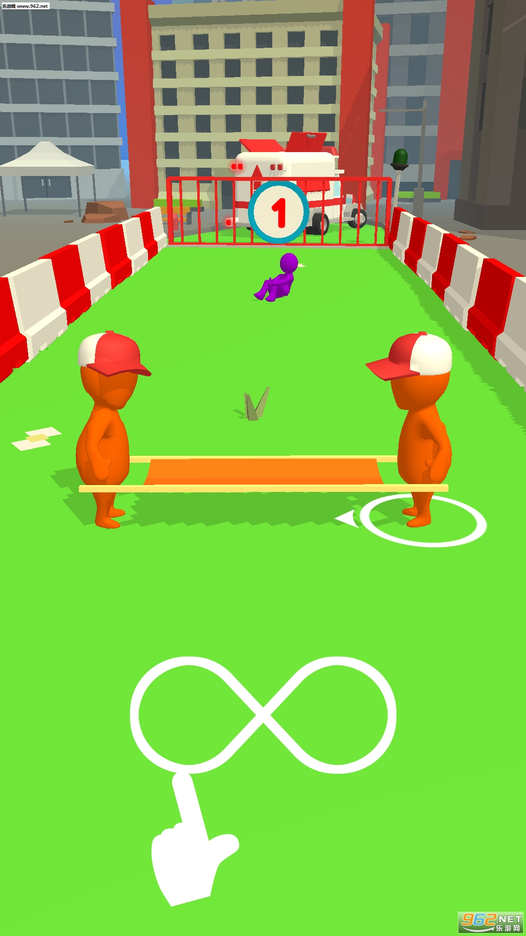 是一款充满了乐趣的休闲类游戏。这款游戏的玩法非常的魔性。玩家在这款游戏中将会使用一副担架不断地运输人类。而且玩家还必须在限定的时间内运输完所有的人。