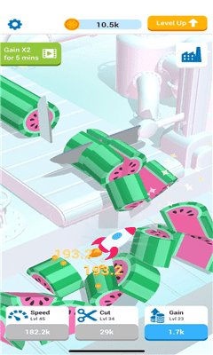 《放置切片与骰子游戏》是一款休闲放置模拟经营切割游戏,游戏将切割与经营玩法结合, 你需要去制作各种切割模具来进行切割,这样你就可以切割出各种形状的水果了,游戏的画面非常的明亮可爱,很让人放松。