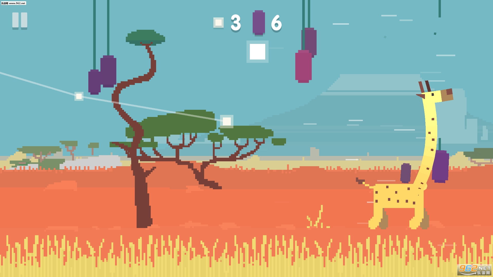 总体来说是一款玩法简单画风简约的单机休闲小游戏,用长颈鹿的脖子去击落果实砸中后方追逐的狮子来逃脱,动感的音乐十分的诙谐需要一定的反应操作,喜欢的亲们赶紧下载吧。