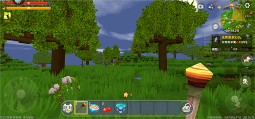 5、找到材料之后,将游戏视角移动到石头上,然后长按石头,就可以自动获取材料了;