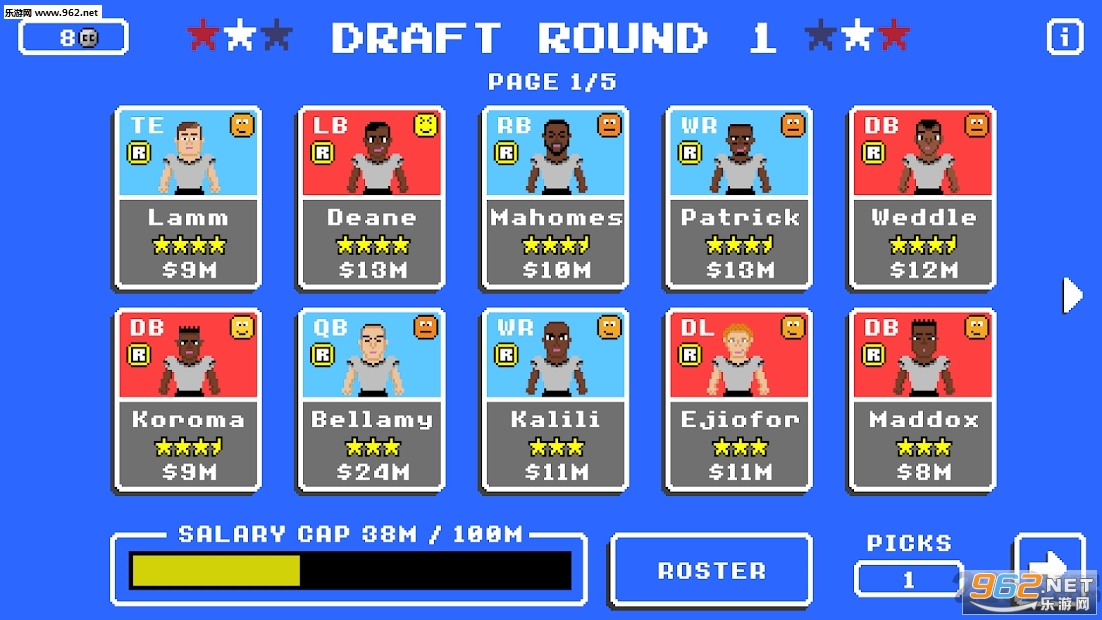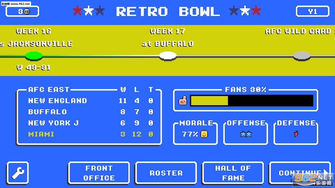 《复古橄榄球赛游戏》是一款画面非常复古的像素风格的橄榄球模拟竞技游戏,游戏中玩家身为一方的橄榄球教练,你要好好的去训练你的球员,你可以不断的解锁新球员,还可以为他们购买新的球衣,运动鞋等等,带领他们去竞争冠军。