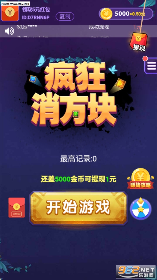 疯狂消方块红包版是一款消除方块就可以赚取红包的休闲闯关手游,玩家在游戏中只需要不停的进行闯关,现金红包即可拿到手软,每天还有丰富的任务等待你的完成,奖励拿不停,同时玩家还可以通过邀请好友进行游戏,来赚取额外的收益。