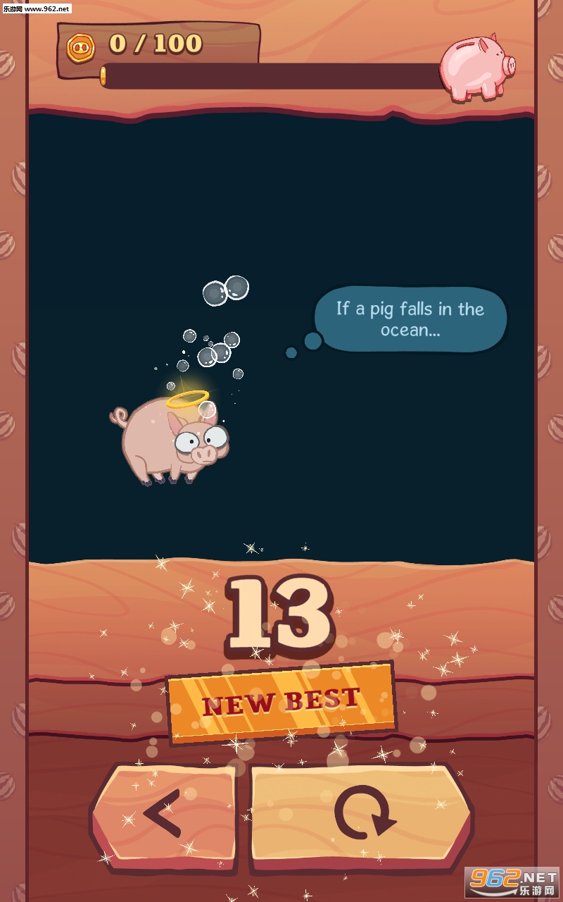 1、有点时候水中出现的不一定是鱼,需要玩家做出反应,并确保小猪不会落水。