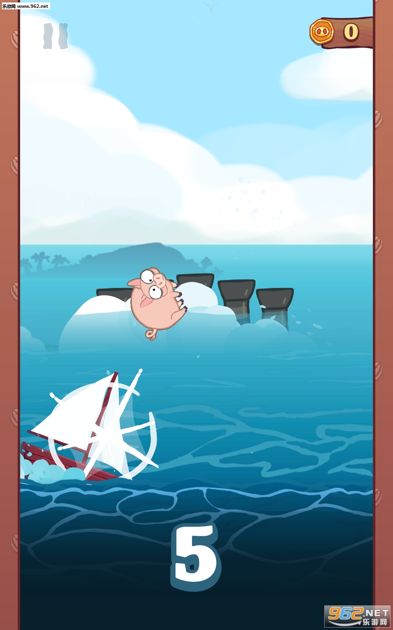 火腿要在甲板上中文版是一款好玩有趣的休闲益智类游戏。在大海上有一艘小船,并且还有一只猪。小猪不能长时间的待在船上否则会沉,于是就只能借用海中跳起的鱼等各种东西,来完成多次的空中跳跃。