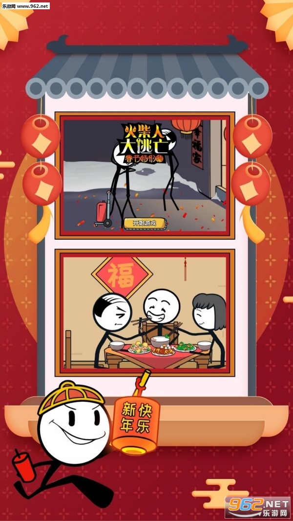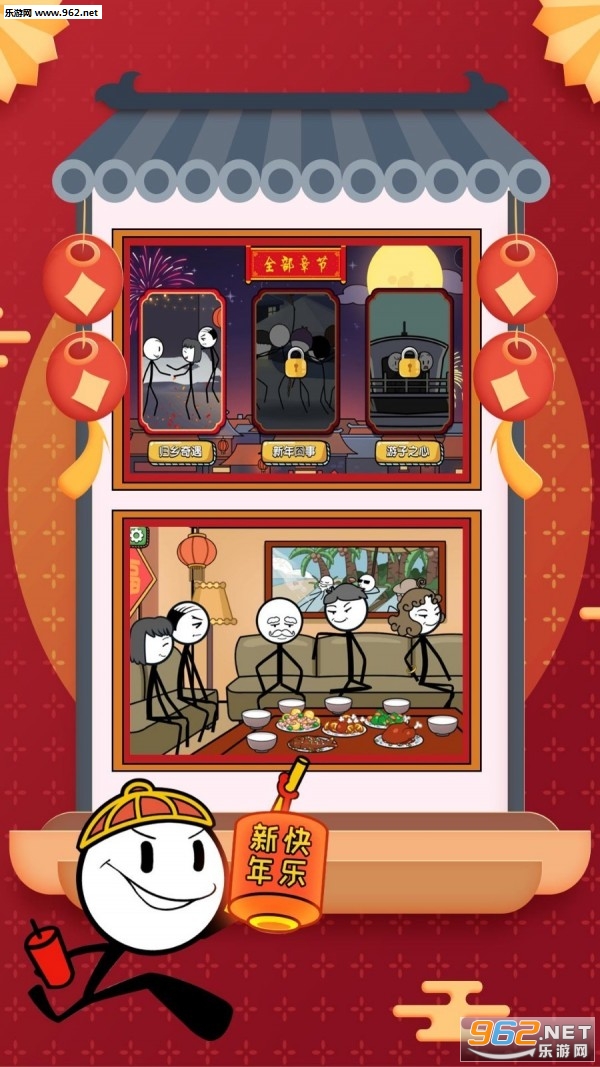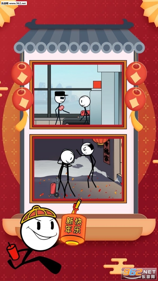2、搞笑漫画风格的分镜头,以解密玩法欣赏火柴人的春节。
