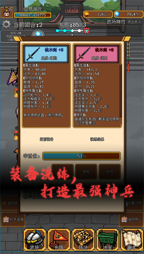 游戏中主要包含推图、爬塔以及日常副本三种玩法,核心乐趣在于开启宝箱,宝箱内可能掉落角色碎片、经验值、金币以及法宝碎片等奖励。