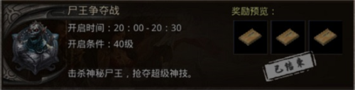 【尸王殿】每周一、二、四、五20:00-20:30开放,单人挑战,无装备掉落风险,是安全刷宝的好去处。