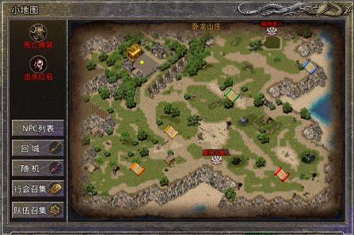 【卧龙山庄】40级以上玩家可于11:00-24:00进入,点击主界面图标即可传送,是中后期核心资源产地。