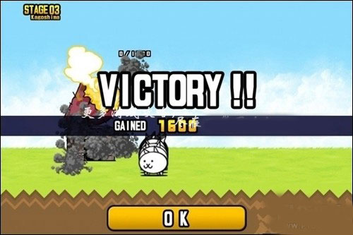 然后进入第四关,先将金钱上限升级为二级,然后召唤14个大男子主义猫开始进攻,注意敌军有了一个全新的兵种,是一种类人生物,如果抵挡不住了可以使用猫炮进行攻击,基本上过关就没有悬念了。