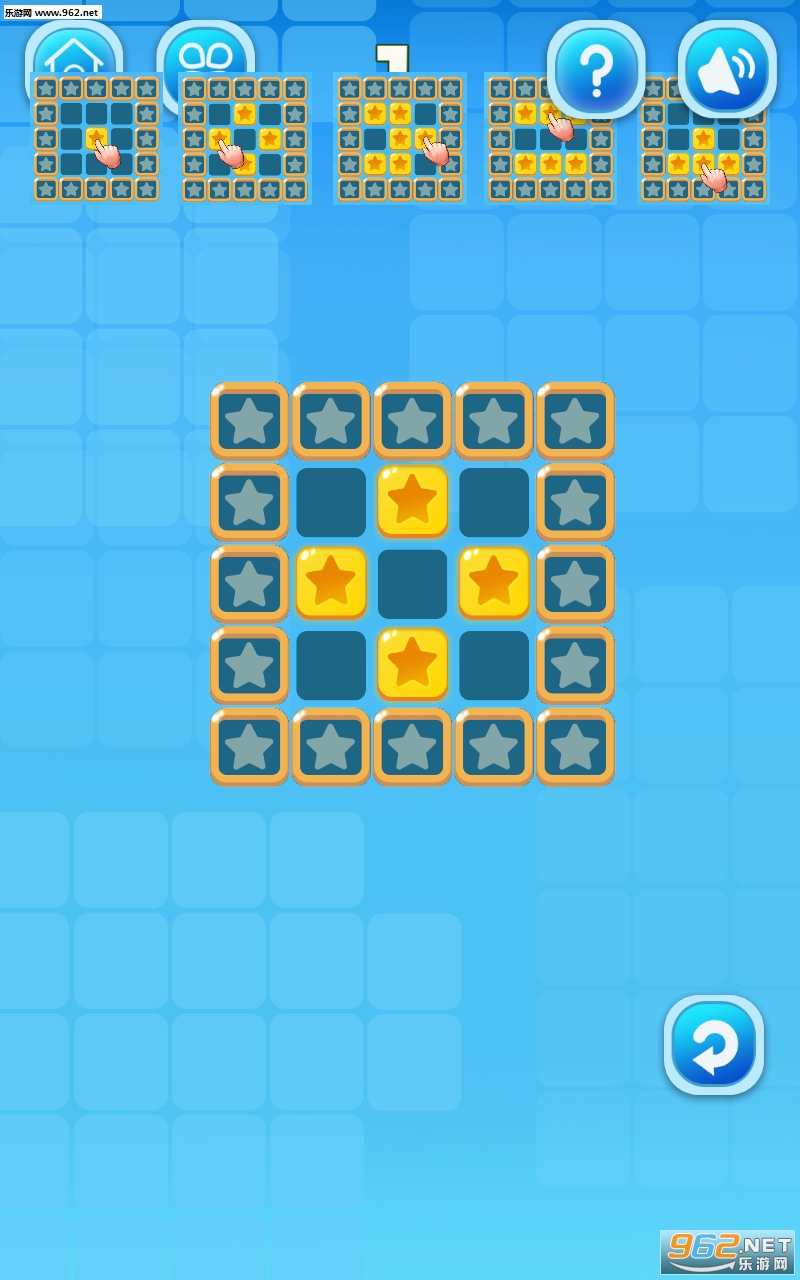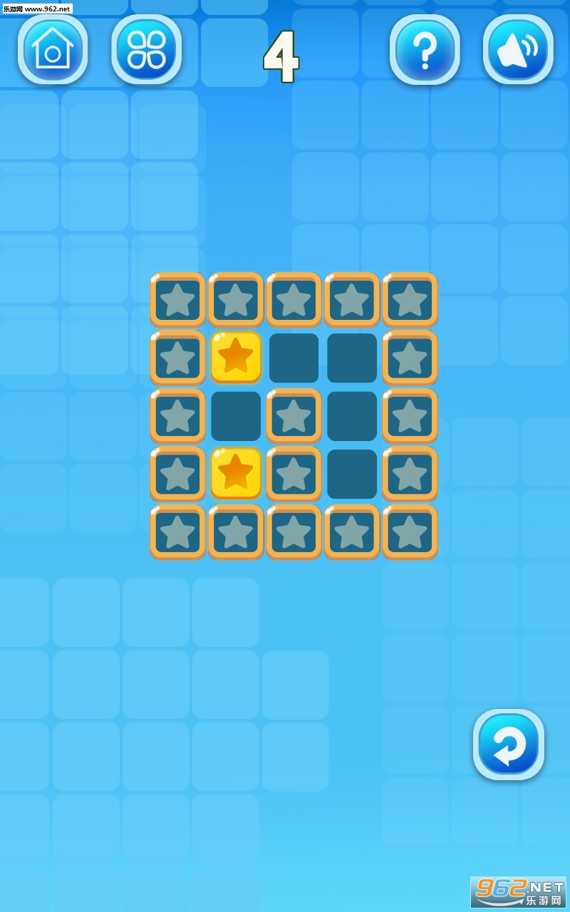 这是一款锻炼你的大脑的拼图游戏。游戏中当你点击金色星星,它会使附近四个方块翻转,而你的目标是要翻转所有出现的金色星星,直到金色星星全部消失才能过关。