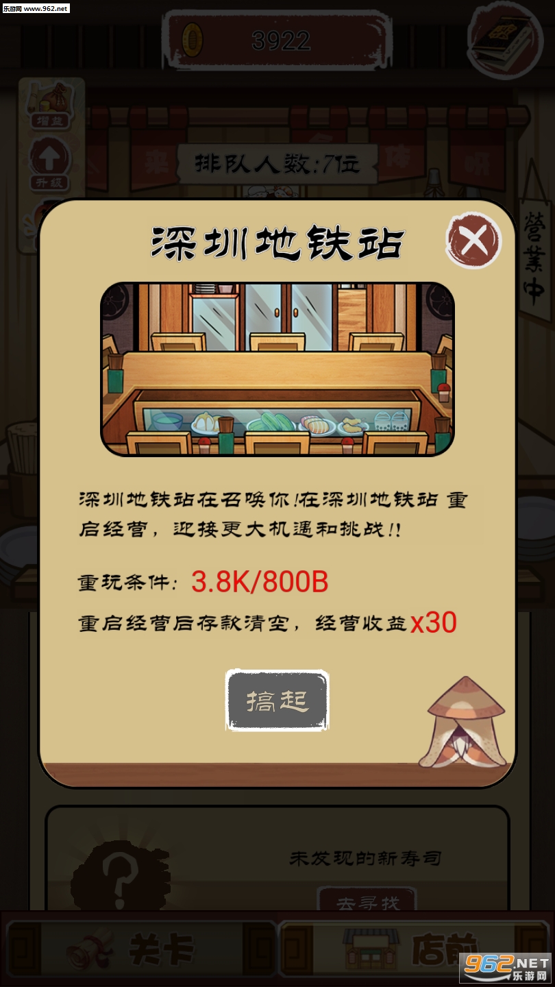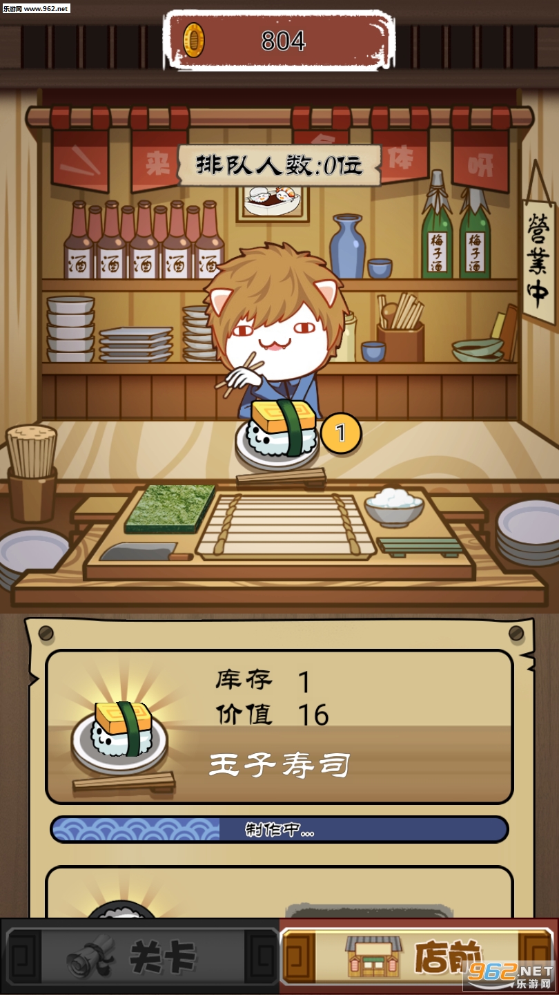 2、拿出你的实力开始更好的管理,制作大量的寿司开始贩卖,去赚取大量金币;