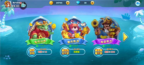 支持四人同屏实时联机,与好友或全球玩家组队协作,共同围剿龙王降世”海盗船长”等强力BOSS。无论是新手专区的龟相迎宾”,还是高阶战场的幽灵船长”金龙禁域”,不同难度场景层层递进,配合千炮系统与高倍率设定,让每一次发射都充满策略与惊喜。