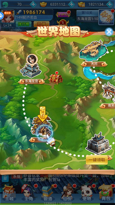 在地图上挑战boss,获取丰富奖励。