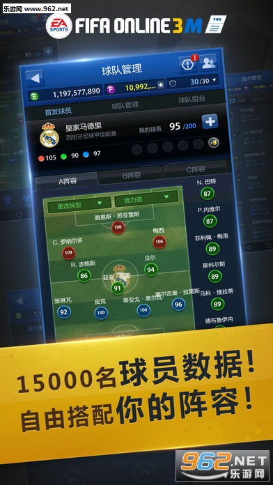 《FIFA足球在线 FIFA online 3 M》是一款足球题材的新型手游,游戏是由开发商EA精心打造、腾讯代理运营的。在《FIFA足球在线 FIFA online 3 M》游戏中,设置了40多支国家队,超过15000名真实球星。游戏中玩家要控制自己的足球队,在各种比赛中打败敌人,获得冠军即可。喜欢的玩家千万不要错过哦!