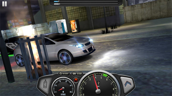 4、车辆启动后档速度表的指针抵达绿色区域后就点击向上箭头的按钮来完成换挡,换挡可以提升你的速度。