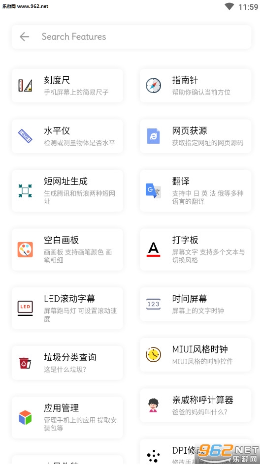 日常工具【刻度尺 指南针 水平仪 网页获源 短网址生成 翻译 空白画板 打字板 LED滚动字幕 时间屏幕 垃圾分类查询 MIUI风格时钟 亲戚称呼计算器】