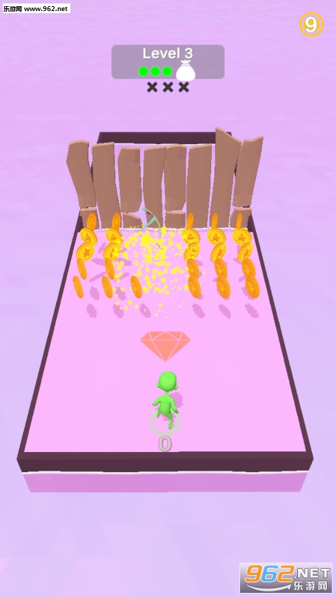 2.在你进行挑战的时候会有很多的金币在场地中,只要飞刀路过就会把他们吃掉。