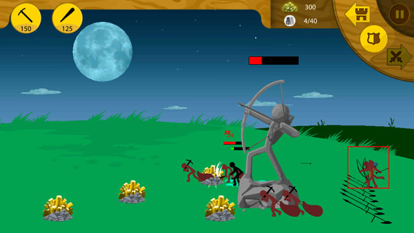6、点击左上角右边的按钮来开始训练一名棍棒手,将敌人的雕塑摧毁即可通关。
