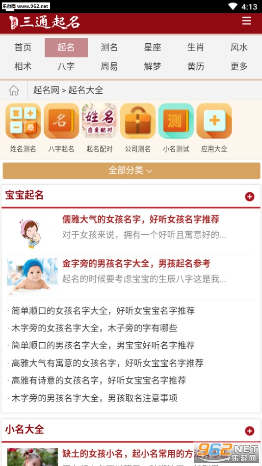 1、主要包括起名方法,起名技巧,起名禁忌和注意事项,以及男孩起名大全及女孩起名大全,