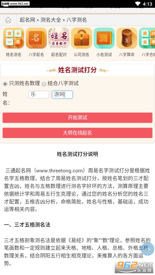 三通起名是一款非常不错的手机免费起名服务应用软件,三通起名app为用户提供了在线算命服务,可通过生辰八字来取名、五行取名等。感兴趣的朋友欢迎下载!