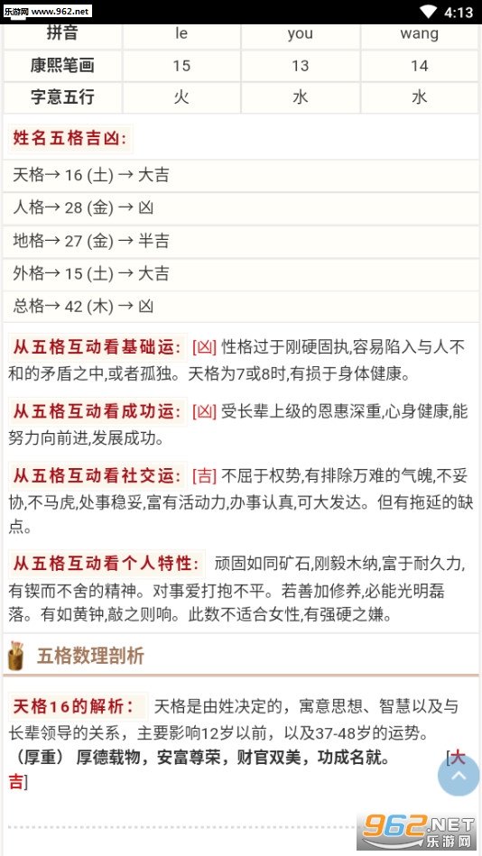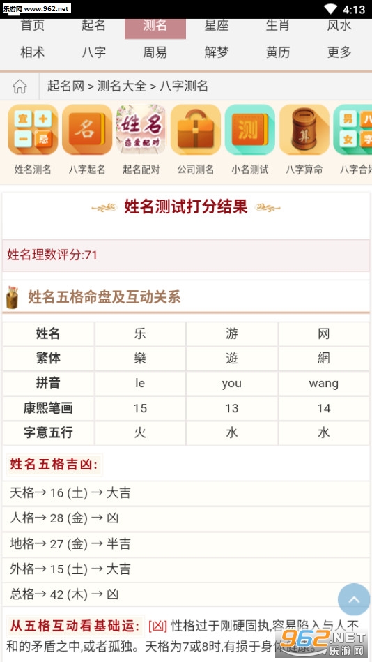 天格、地格、人格、外格、总格、三才数理、五行元素、好听等多种因素,