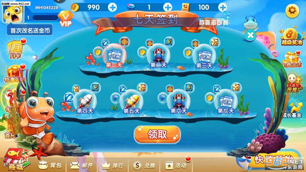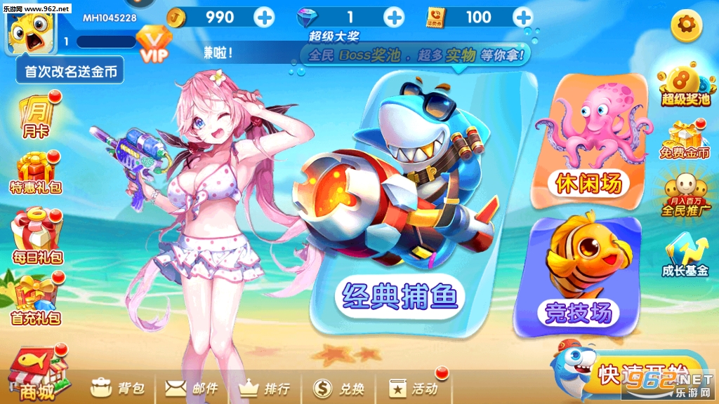 一款非常完美的手机捕鱼类手游,完善的捕鱼游戏玩法,海量鱼群等你来捕捞,不但可以玩游戏,还能赚红包赢话费,感兴趣快来962下载体验吧!