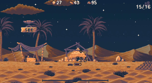 2、初始场景为一片荒原,仅两名角色可供操控。你需引导他们收集资源、建造庇护所,并密切监控其状态——一旦角色死亡,游戏即告失败。