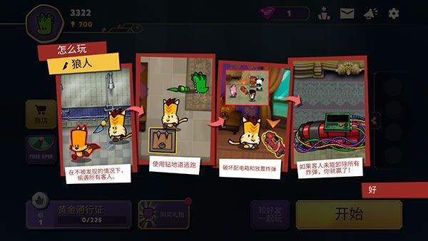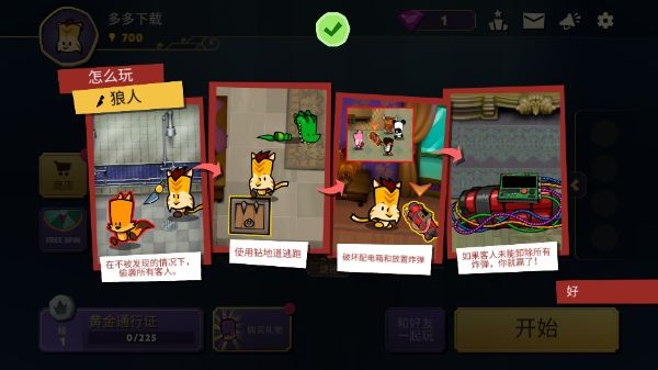 而作为狼人”,你需要在不被目击的前提下暗中袭击客人,同时可利用地道快速转移、破坏配电箱制造混乱,甚至安放炸弹——若客人未能及时拆除所有炸弹,狼人将直接获胜。伪装、误导与时机把控,是狼人取胜的关键。