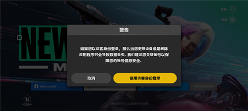 2. 点击游客登录”,确认使用该方式进入游戏。