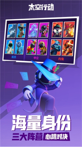 从颜色、帽子到皮肤与背包,游戏支持全方位外观自定义。无论是酷炫未来风还是萌趣联动款(如猪猪侠限定套装),你都能自由搭配,塑造独一无二的太空形象。更有拍桌动画、表情、拖尾特效等个性化道具,让你在派对中脱颖而出。
