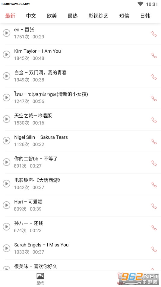 实用的手机壁纸软件,软件有着丰富的壁纸资源,高清无水印,种类多样,总有一张是你喜欢的,软件还有着海量的铃声资源可以免费享用。
