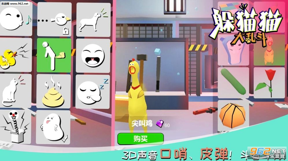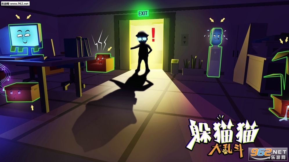 一款3D捉迷藏类休闲游戏。游戏中分为两个阵营:寻找者与躲藏者,躲藏者可以伪装成各种物品,同时可以使用皮弹和3D声音口哨诱导寻找者,寻找者只需在200秒内找到所有躲藏的玩家就可以获得胜利。