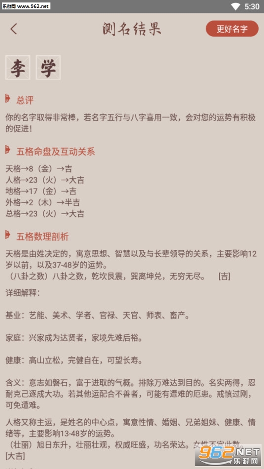 根据独有的智能解名优化算法,为您的姓名提供多层次解析,了解姓名有的能量助力。