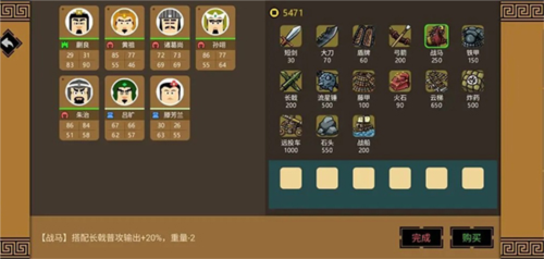 售价200,攻击距离+1,适用于普攻与火攻,且不增加负重。虽无伤害加成,但对主力武将或文官极具战略价值。拥有弓箭后,文官可随军野战,亦可登城协防,在地形受限的战斗中提供关键远程支援。
