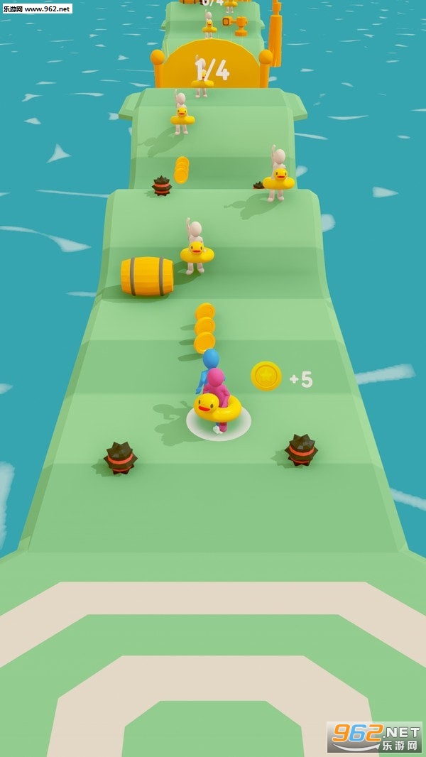 1.这个游戏的玩法的话就是非常简单的向前冲冲冲的游戏了;