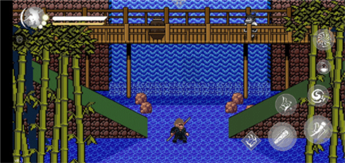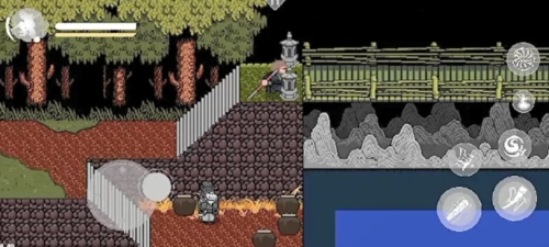 游戏内包含十个风格迥异的场景地图,每一处都经过作者细致打磨,从幽深古刹到飞瀑悬崖,像素画面下暗藏丰富细节。角色移动、跳跃、攻击等操作高度还原原作手感,玩家可施展标志性的棍花”连击、积攒棍式”释放强力技能,甚至完成精准的完美闪避”,在指尖重现黑神话的战斗美学。