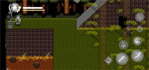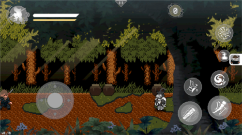 游戏采用直观的虚拟按键布局:左侧摇杆控制移动,右侧按钮负责攻击与技能释放。左上角实时显示角色血量与能量值,使用技能会消耗能量,合理管理资源是制胜关键。葫芦”道具位于界面右侧,可随时回血回能,助你从容应对强敌。