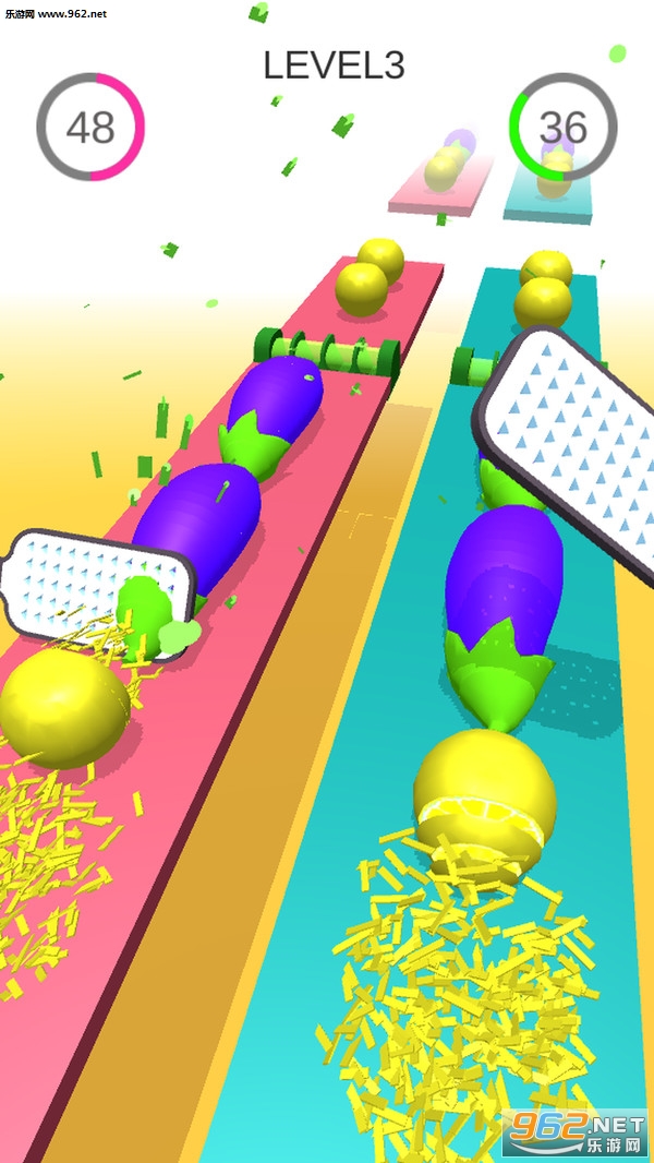 超多关卡,无限挑战。您还可以和电脑进行比赛,看谁切丝更6。还等什么快来比比吧!