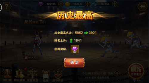 系统每日免费刷新5次对手,不满意可消耗钻石继续刷新;