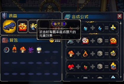 游戏中的强力装备往往需通过合成获得,掌握关键配方将极大提升战力。例如【精灵王】可通过火精灵、冰精灵与雷精灵三者合成,触发火焰爆炸、冰冻控制与雷电连锁三种强力元素效果,是公认的顶级装备之一。而【圣里贝留斯】则由里贝留斯、圣十字与任意道具合成,召唤出的圣骑士仆从不仅血厚,还能释放全屏剑气,死亡后一分钟自动复活,堪称战场支柱。